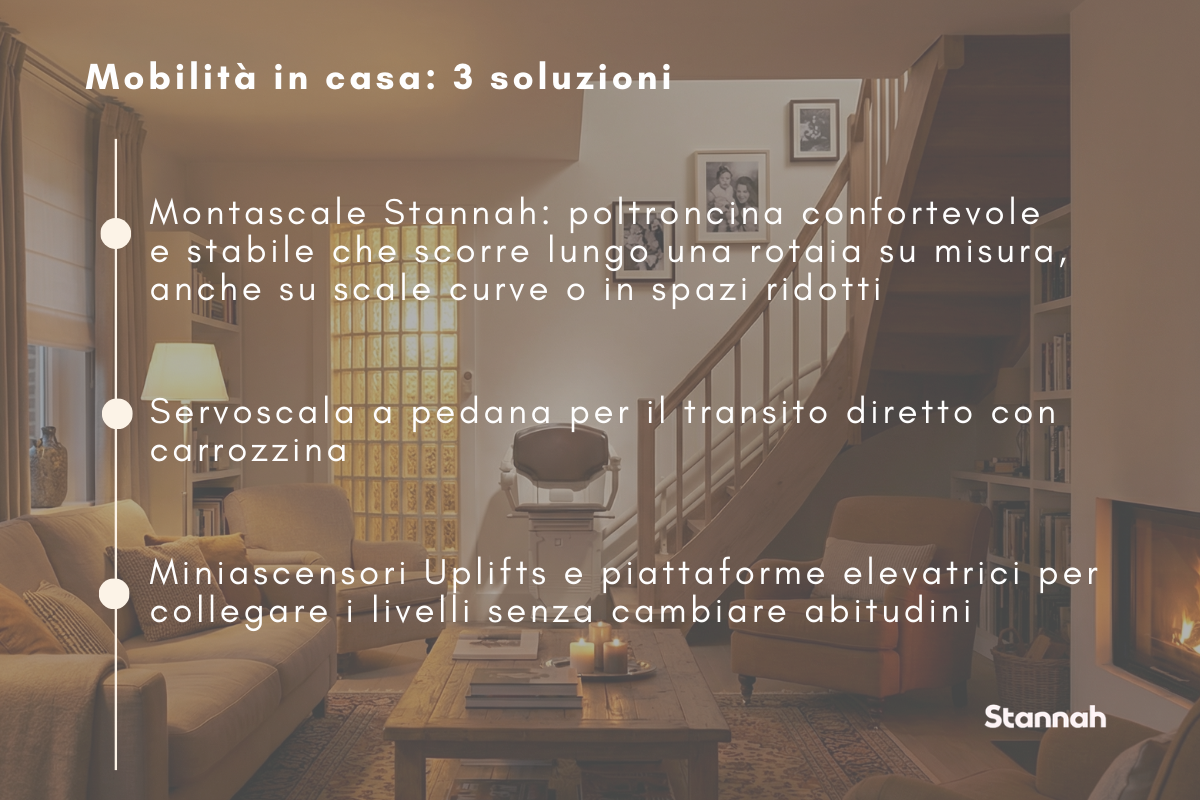 Soluzioni strutturali come quelle proposte da Stannah, insieme a strumenti di organizzazione domestica e a servizi di mobilità esterna, permettono di mantenere continuità nelle proprie abitudini e nei propri spostamenti.